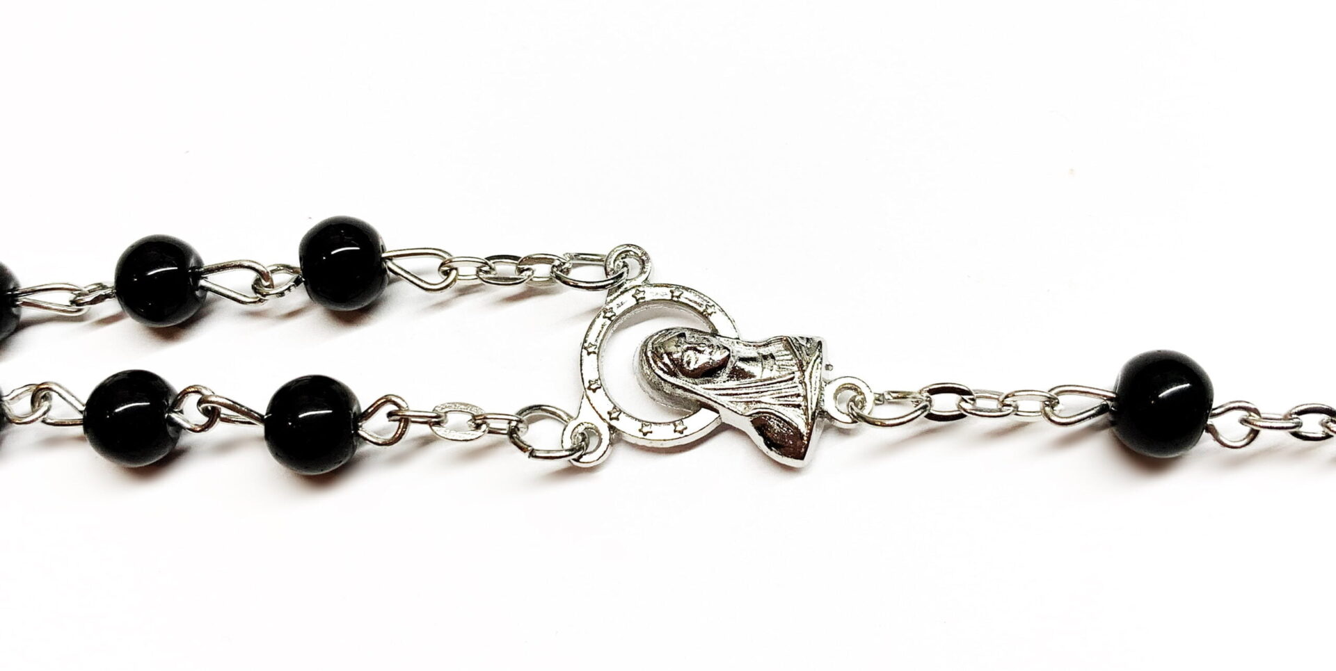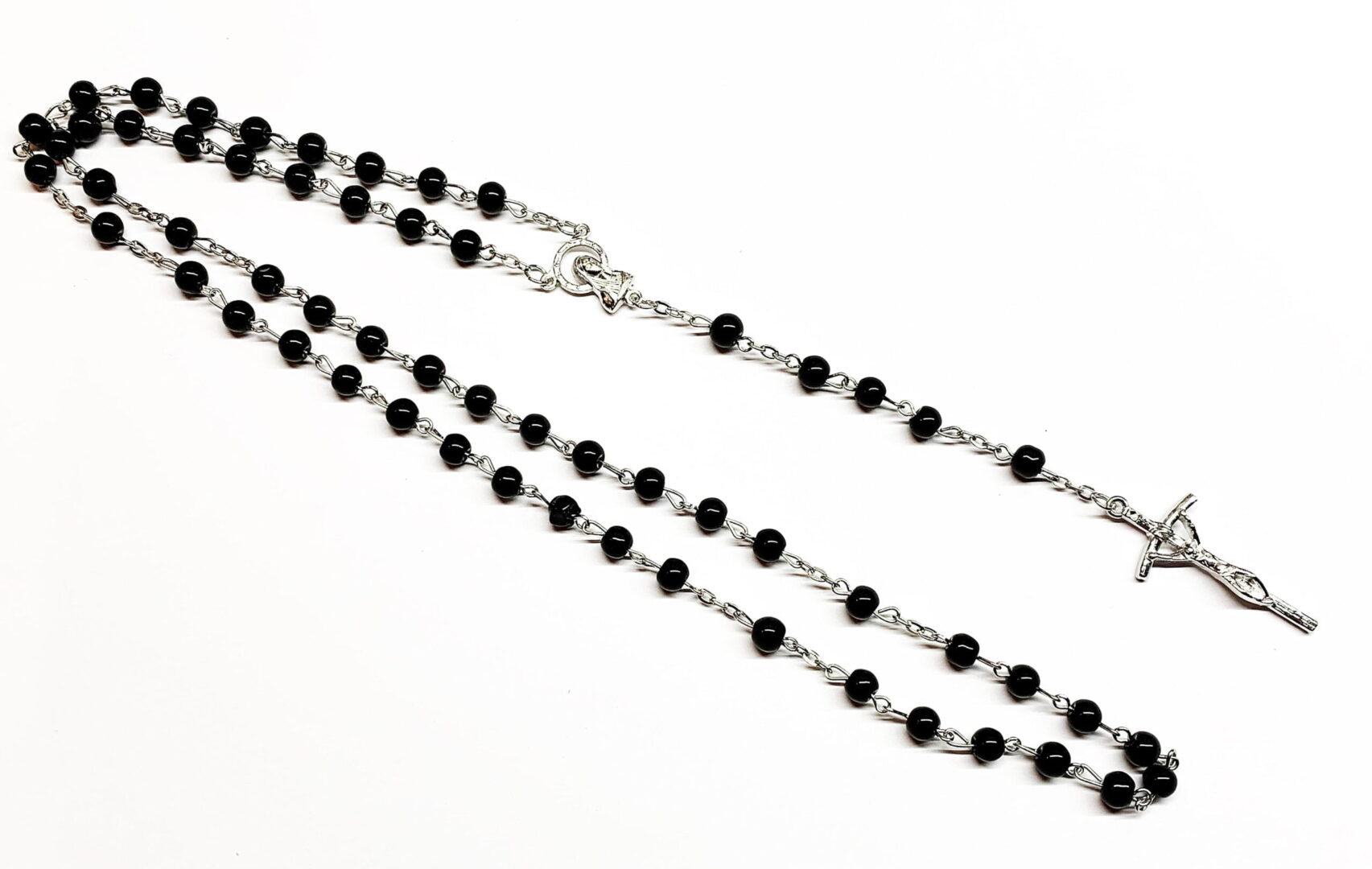 Ροζάριο λαιμού μοναστηριακό μεταλλικό με μαύρες χάντρες ρητίνης