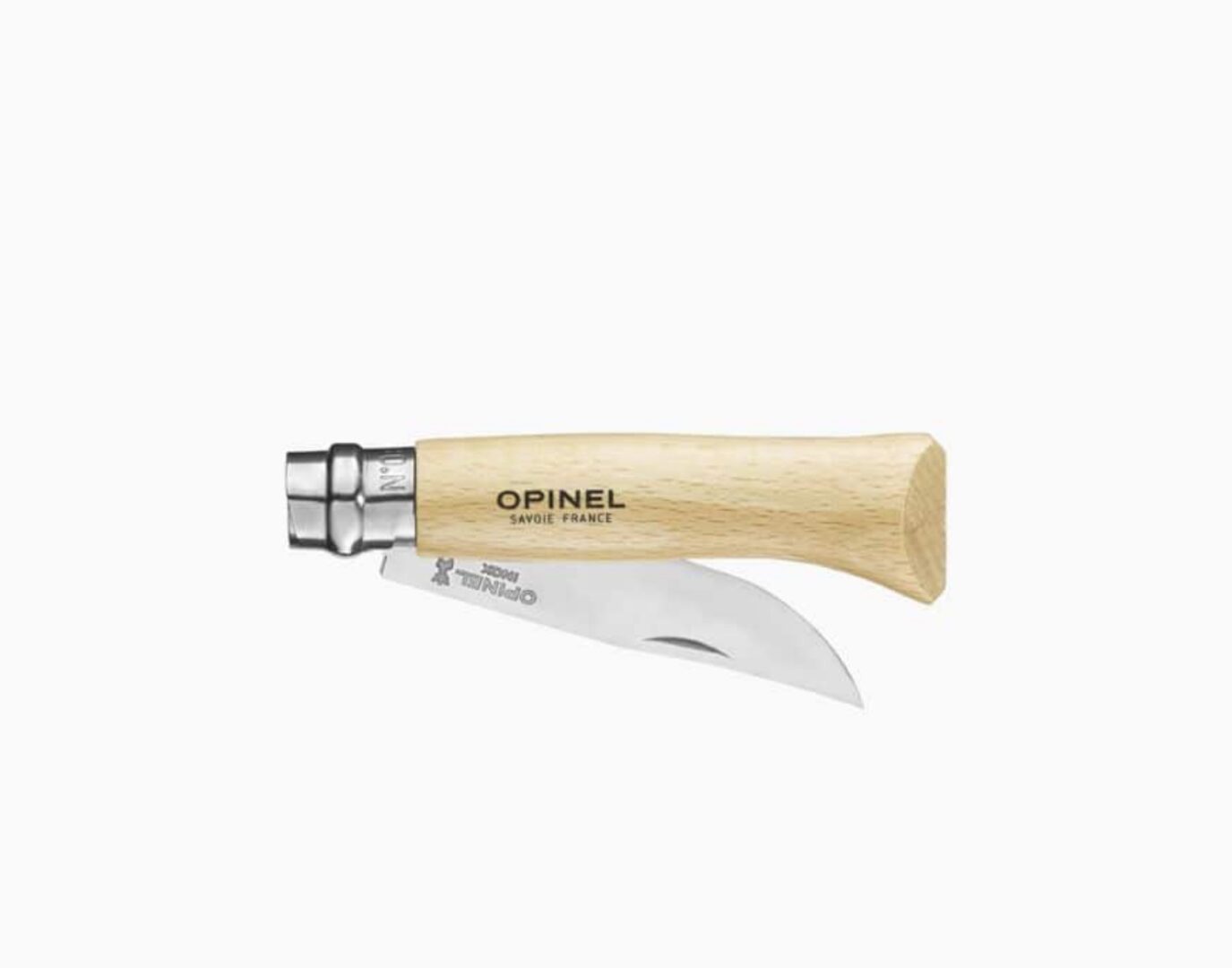 Σουγιάς Νο 8 της γνωστής γαλλικής εταιρίας OPINEL με λαβή από ξύλο οξυάς και ανοξείδωτη λάμα.